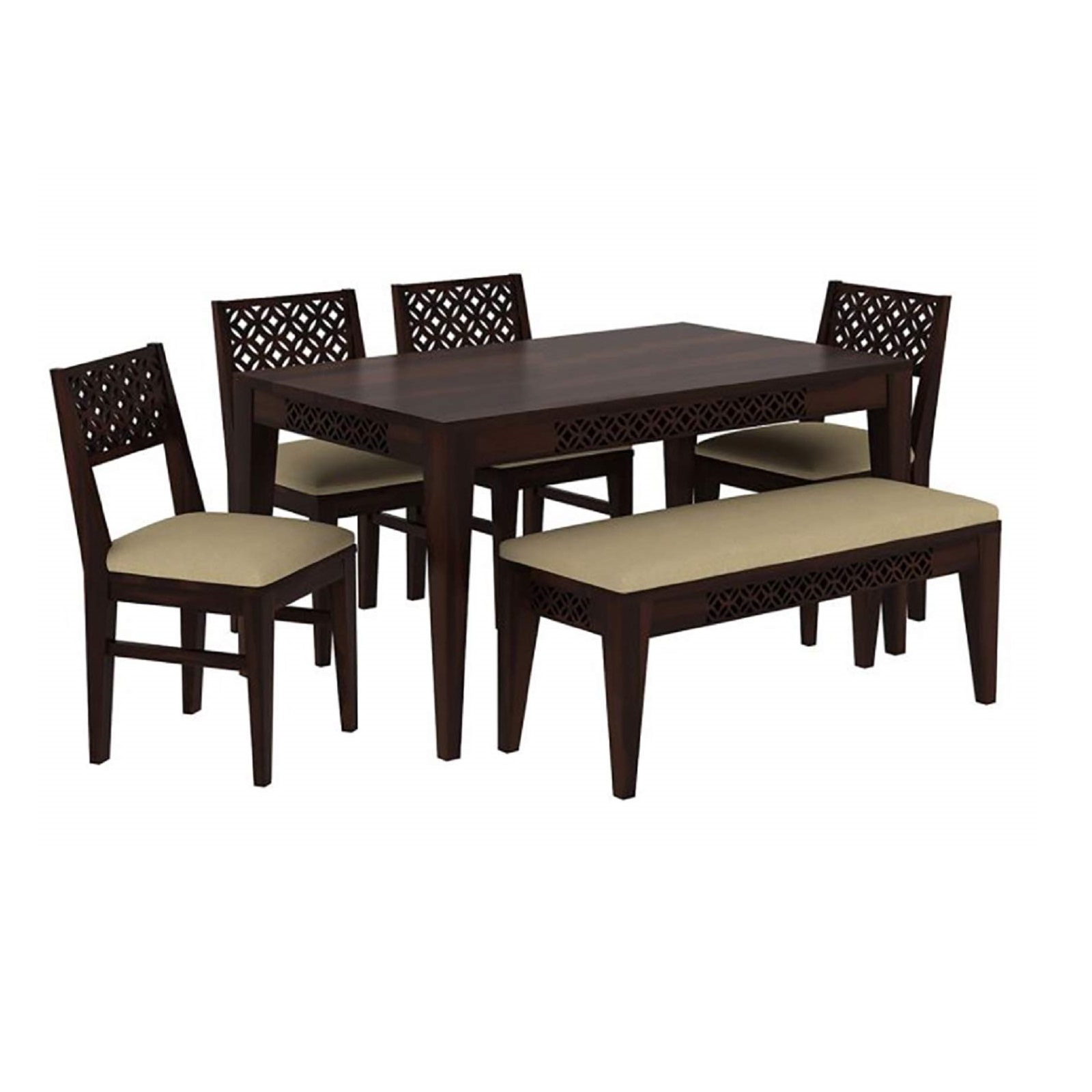 | SIZE | Size : Table –Length (59 Inch), Width (36 Inch), Height (30 Inch), Chair: Length (18 Inch), Width (18 Inch), Height (36 Inch), Bench: Length (48 Inch), Width (18 Inch), Height (18 Inch) |