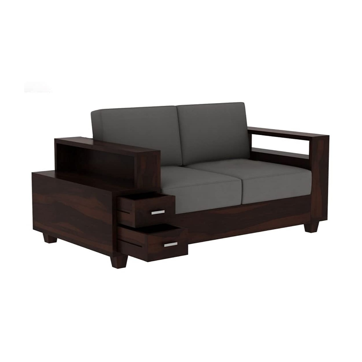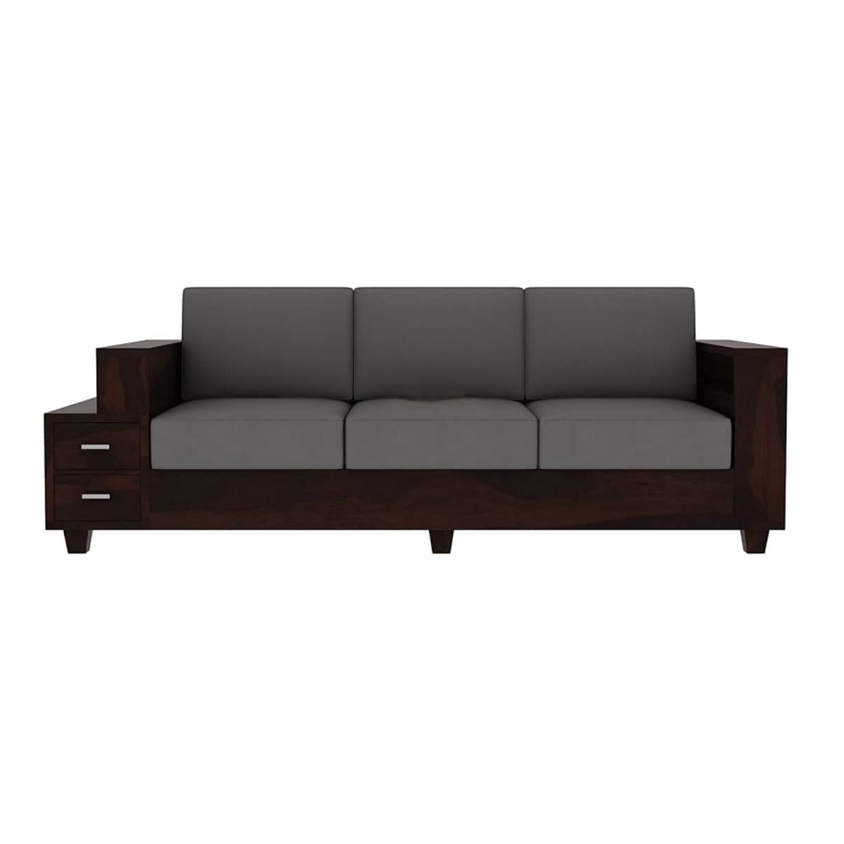 Solid Sheesham Wood 6 Seater Sofa Set with Drawers (Walnut Finish)