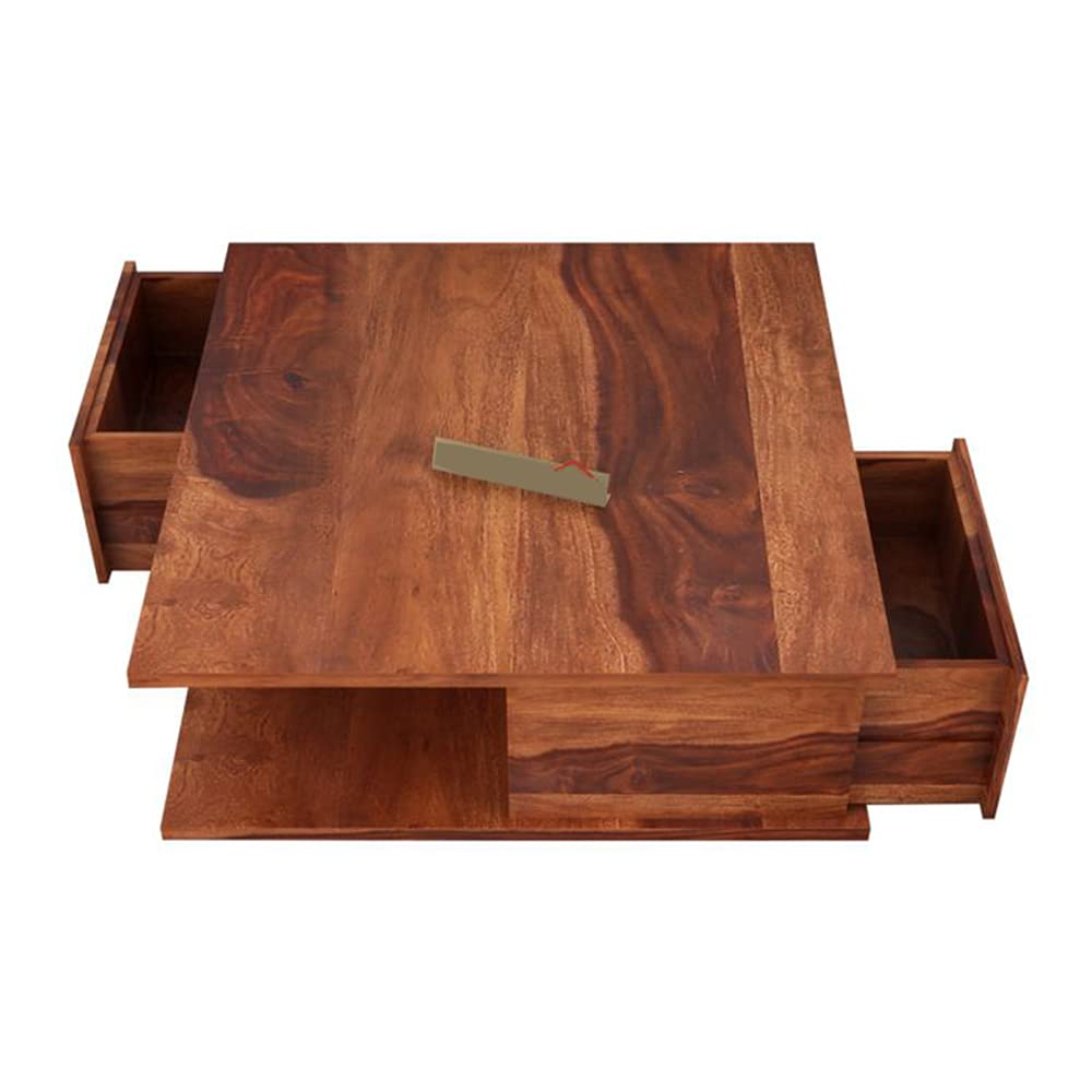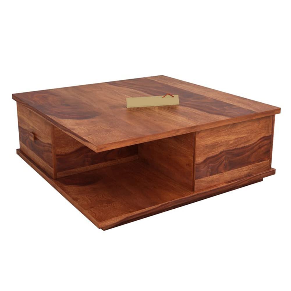 Solid Sheesham Wood Center Coffee Table for Living Room Drawer & Shelf Storage (Honey Finish)