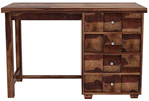 Solid Sheesham Wood Study/Office Table for Students with 4 Drawer Storage (Teak Finish)